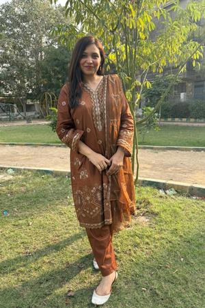 Shirt: Front par heavy Chikankari embroidery hai, jis mein intricate floral aur geometric motifs shamil hain.